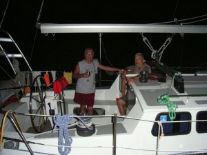 Je n’ai pas pu terminer la partie précédente de mon message. En effet c’est à ce moment précis que notre moteur s’est mis à faire des siennes. Il ne nous a pas laissé tomber mais il a refusé de nous fournir ses 2500 tours minute. 2000 tours maximum. J’ai heureusement pu rejoindre le propriétaire du voilier par téléphone cellulaire qui a pu nous expliquer comment nous tirer d’affaire. Seuls les amateurs de mécanique pourraient s’intéresser aux détails que je vous épargne. Nous voilà donc repartis. Et c’est de nuit que nous avons traversé New-York, moi à l’ordinateur et mes équipiers sur le pont. La tâche devient plus facile à mesure qu’on s’éloigne de New-York  en remontant l’Hudson mais le sommeil gagne chacun de nous à tel point que la seule alternative qui nous reste consiste à mouiller l’ancre le  long de la rive est en amont du pont George Washington. Il est 0620 h tel que mentionné au journal de bord