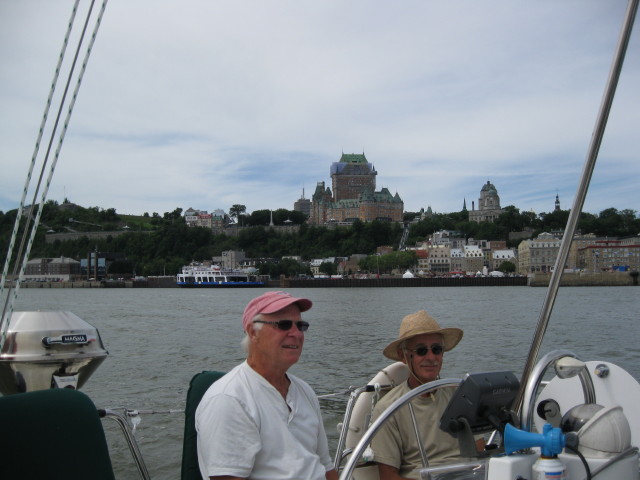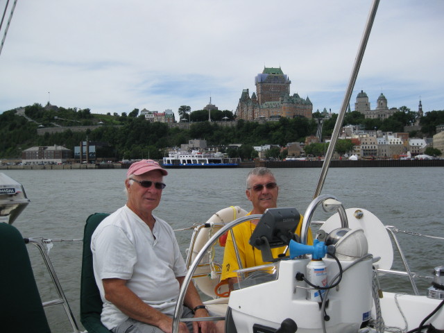 Mais revenons à nos Ulysses qui ont franchi le pont de Québec et quelques nautiques de plus… sans vent comme les images le montrent et au grand désarrois des marins à bord, qui étaient prêt pour la « Grande Aventure ». Lundi, nos « trois vieux mousquetaires » (expression de Richard) étaient rendus à St-jean-port-Joli après leur première journée de voile. Enfin!