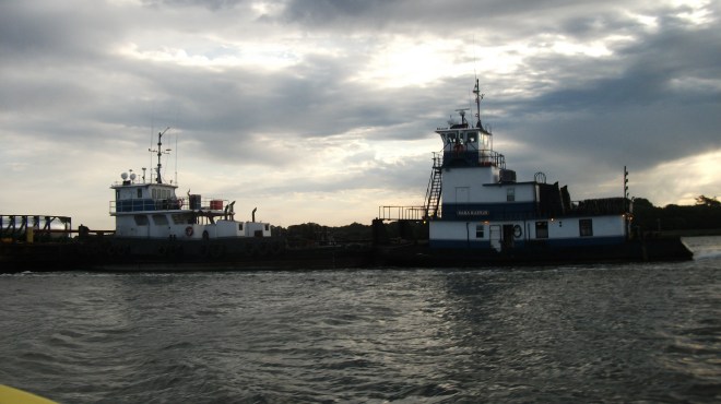 Hier soir, j’étais tellement fatigué de ne pas trouver un ancrage dans le canal au sud de Myrtle Beach que je me suis finalement attaché au Marqueur G-17 ppur la nuit. Il y avait un tel traffic du samedi au cours de toute la journée. Mais 18h00 étant venue, plus rien, le calme plat, sauf pour une chaloupe de pêche par ci par là. Alors, j’ai pris une chance et j’ai l’impression qu’il ne s’est rien passé de la nuit.