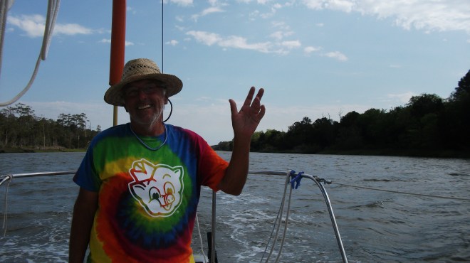 Heureusement que j’ai suivi le conseil de Renée et suis resté à l’intérieur malgré l’appel de la sortie à l’inlet de Little River une heure après mon départ ce matin. Le 5 à 10 Nds de l’Est est monté à plus de 15 Nds et j’ai entendu des réponses de la Garde Côtière aux appels de détresse tout au long de l’après-midi sur le Canal 16. De toute façon, dans ce secteur il n’y a pas d’avantage à sortir en mer car le lagon ou le canal suit la côte.
