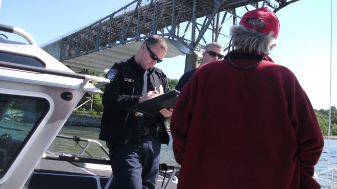 Le lendemain, la deuxième demi-journée. levé tôt je me rends à moteur vers la dernière sortie avant New York. Si j’y arrive assez tôt, je peux rejoindre la Grande Ville aujourd’hui même car on prévoit des vents légers qui vont monter du secteur sud en après-midi. ça ressemble à un bon pronostic pour me rendre au moins à Sandy Hook une vingtaine de miles plus haut ou mieux encore, quelques 15 miles plus loin au pied de la Statue de la liberté.