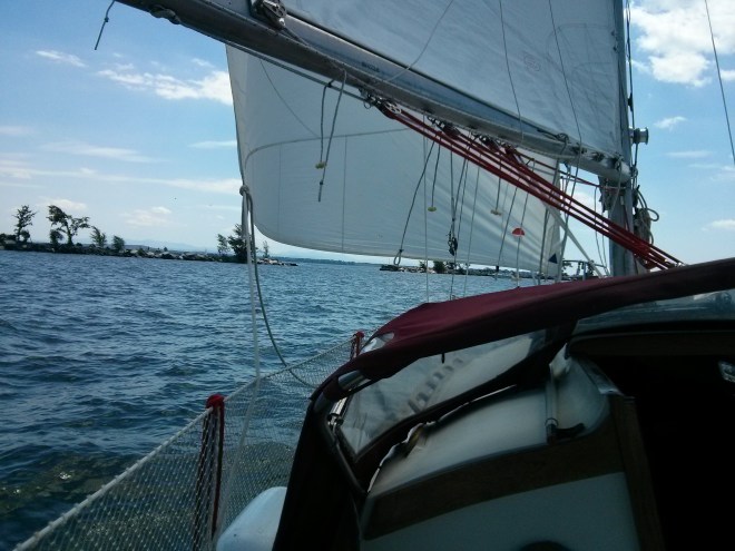 Passé un premier grand bassin presque circulaire où il fait bon naviguer en eaux protégées de toutes directions, vous accédez dans une autre marre un peu plus petite : Mallett’s Bay. Là vous découvrez les marins, les vrais voileux du Lac Champlain.