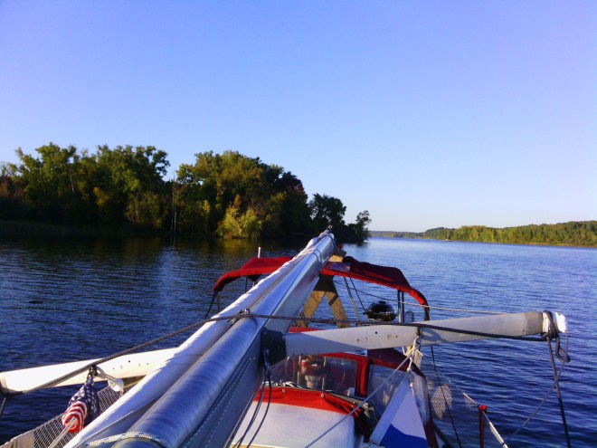 Quand je l’ai appelé au numéro de téléphone qu’il m’avait laissé sur mon VHF portable, il m’a parlé d’un petit ancrage qu’il avait repéré un peu avant notre destination commune de rematage. Ce n’est pas celui-ci mais on se retrouvera là-bas demain de toute façon.