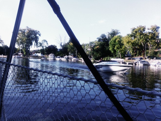 Jolie vue sur l’eau calme et les bateaux… Chanceux!