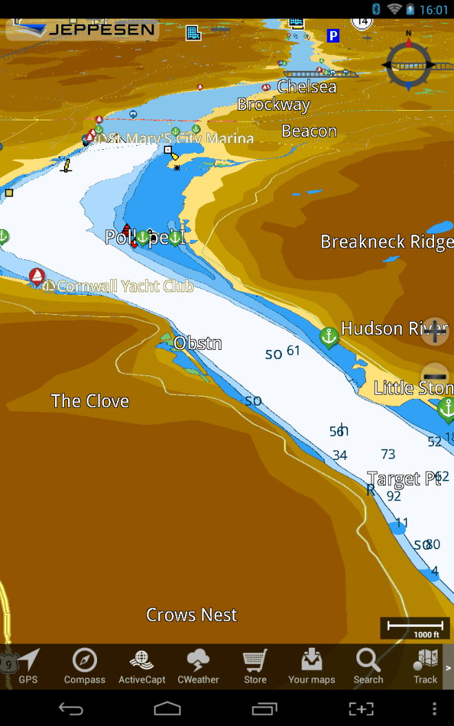 Puis je vous raconter tout ça à l’ancre dans la petite enclave derrière Little Stoney Point. Là où vous voyez le symbole vert près du "H" de Hudson River, sur la carte.