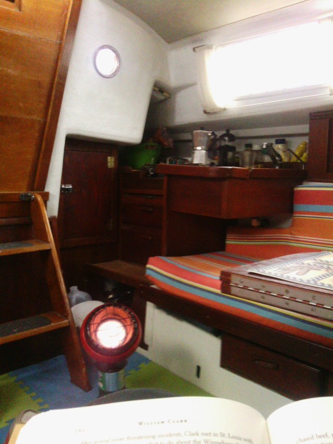 Profite bien de ce calme intérieur dans la tourmente ambiante. Ce sont des moments précieux de cocooning énergisants, je trouve. Et je sais la qualité de ta bibliothèque à bord 😉 Ton vent baissera bien assez vite! Big becs et à bientôt! xxx