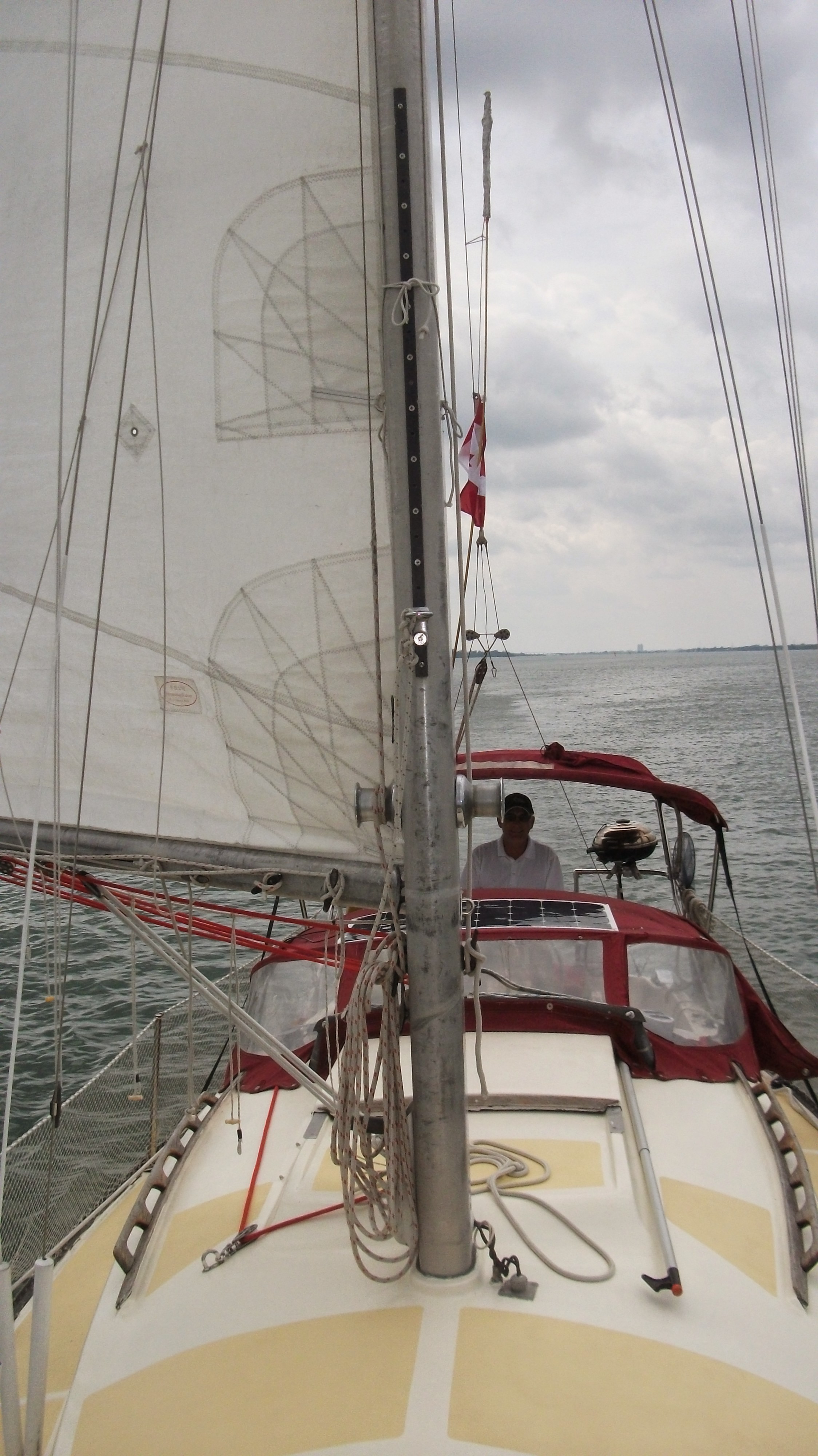 Il m’a avoué, candidement, qu’il préférerais plutôt sans le mât et les voiles. Une option qui lui a probablement été inspirée par le premier à gauche en entrant dans le canal du chantier naval où mon voilier a passé l’hiver.