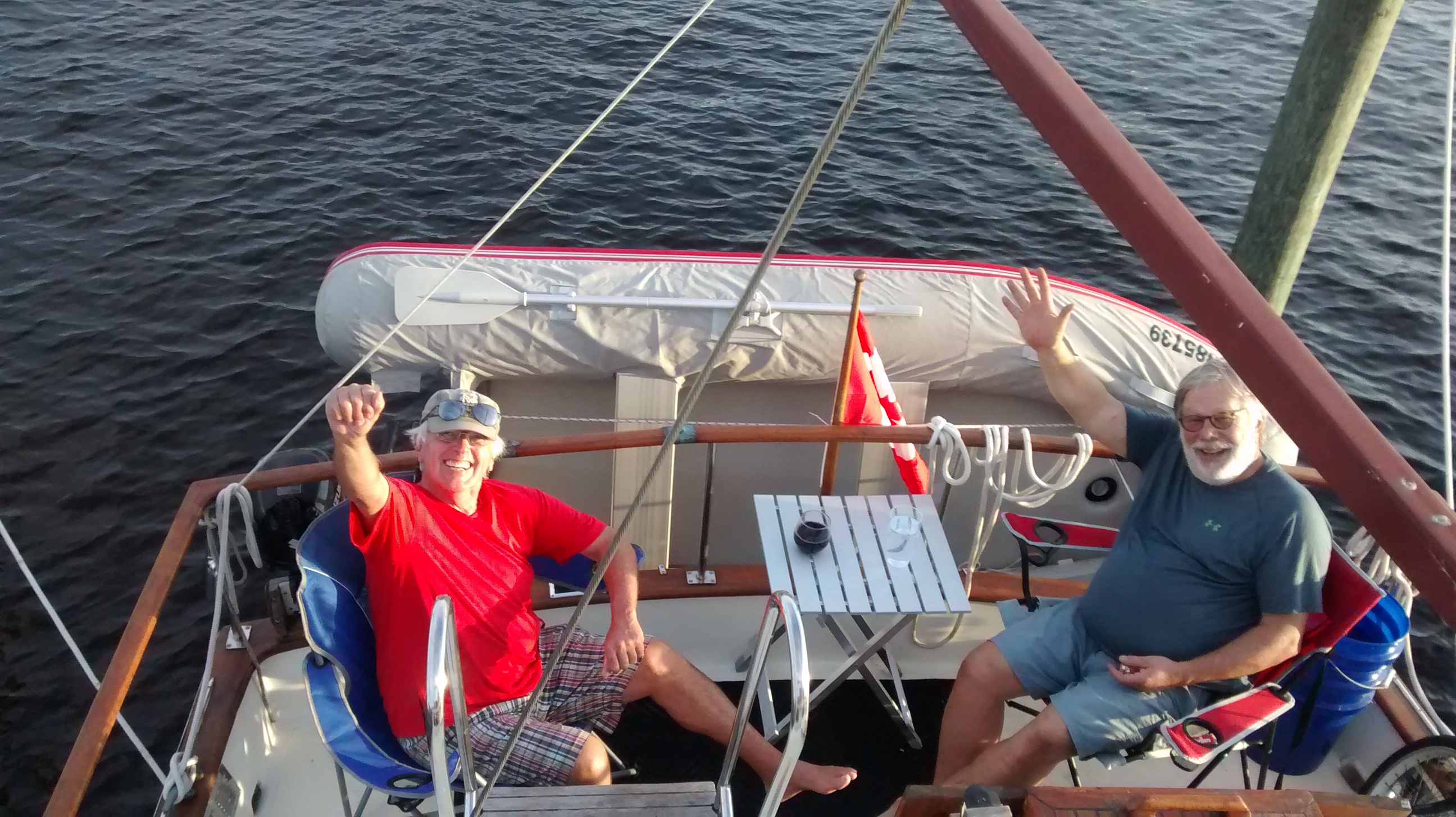 On a même aménagé le balcon arrière en vue des soirées à venir, ancrés sous le vent d’une île des Exumas.