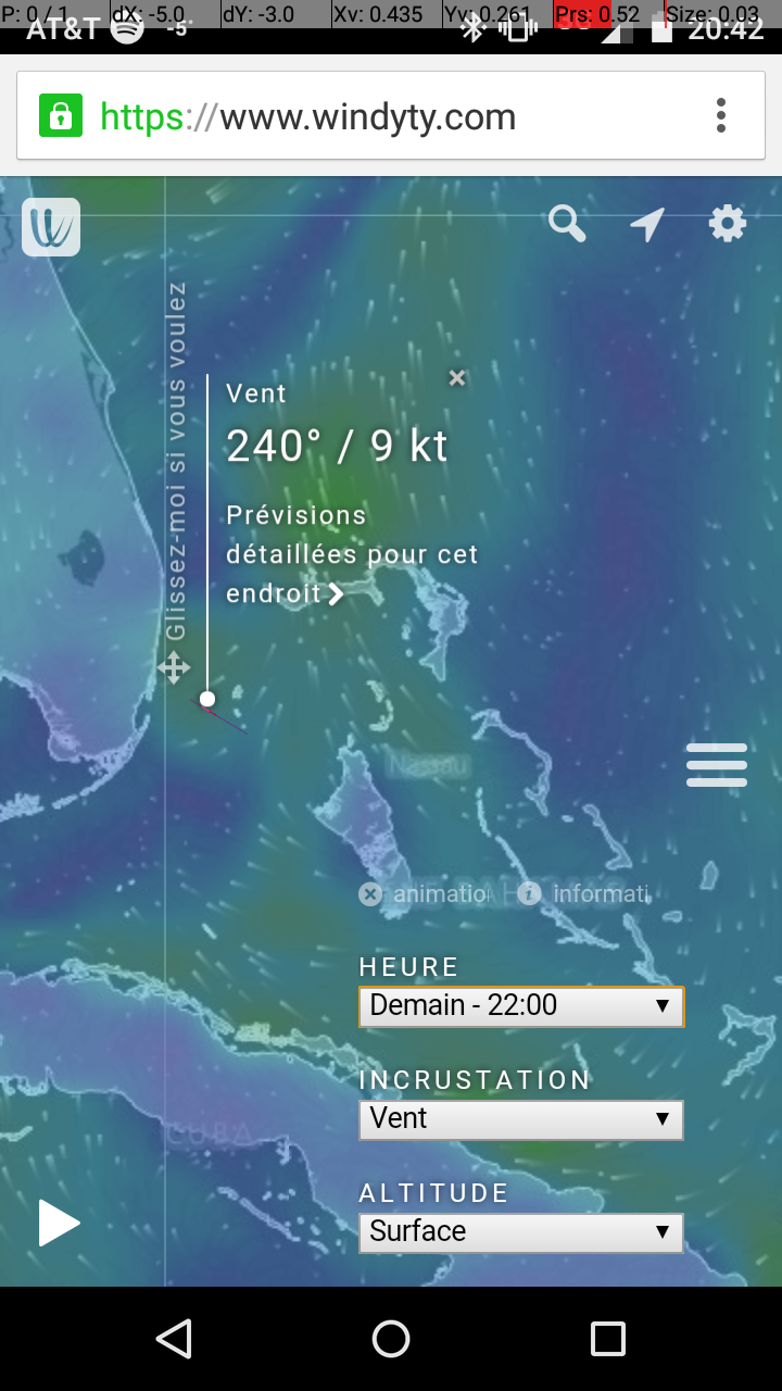 Chacun sur sa tablette, chacun son logiciel de météo, on compare nos observations séparés et ça coïncide. On a une fenêtre météo qui nous permet de partir demain soir vers Minuit de No Name Harbour à Cay Biscayne pour traverser vers Bimini et y arriver avant Midi Samedi.