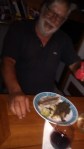 Pendant que je vous invite à traverser avec nous, Jean-Guy fait sauter son maquereau pêché hier pour le dernier dîner aux USA.
