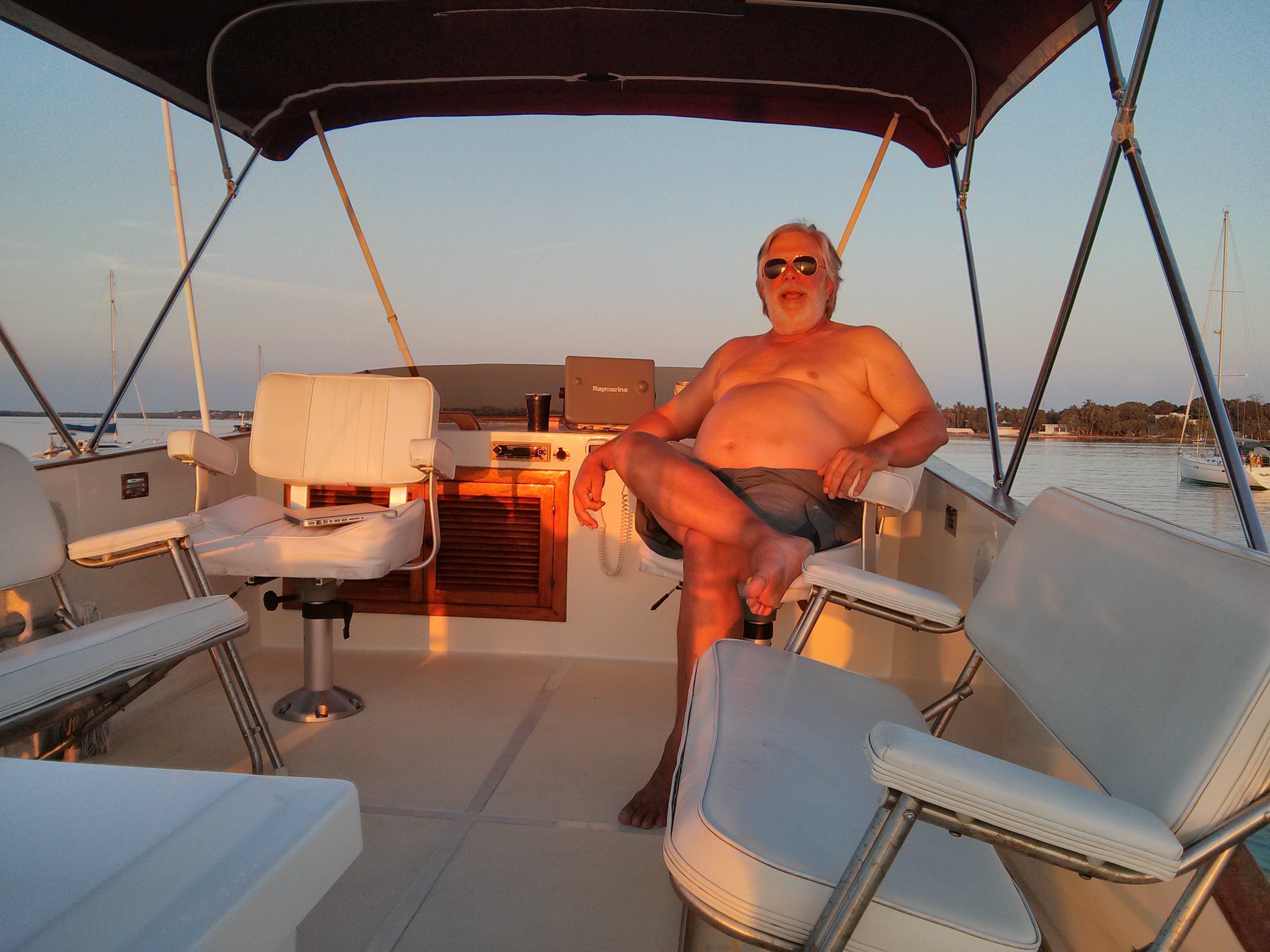 À l’ancre devant un Virgin César dans le carré, j’attends que J-G nous ait organisé la Marina pour demain soir au Loggerhead de South-Miami, gracieuseté de l’Entente de réciprocité avec sa Marina de Stuart.