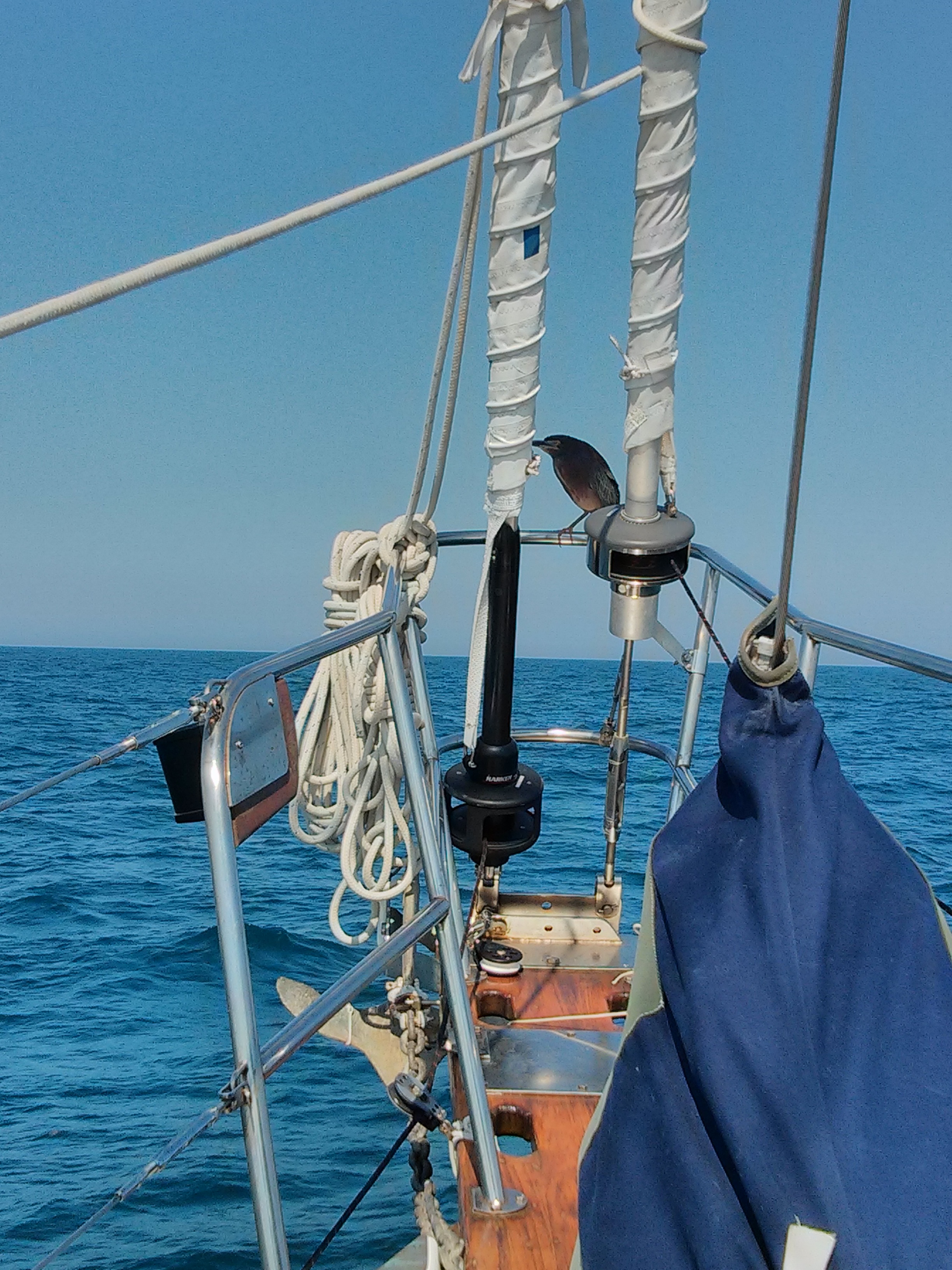 C’était dimanche aujourd’hui. Je viens de me rendre compte que nous étions partis pour une dizaine de jours et que nous en sommes maintenant au 12ième et que nous ne serons pas au port avant une autre semaine, minimum. Si Gill nous revient à Norfolk, ça peut se faire. Si non, on va bien devoir prendre le Long Island Sound à New York.