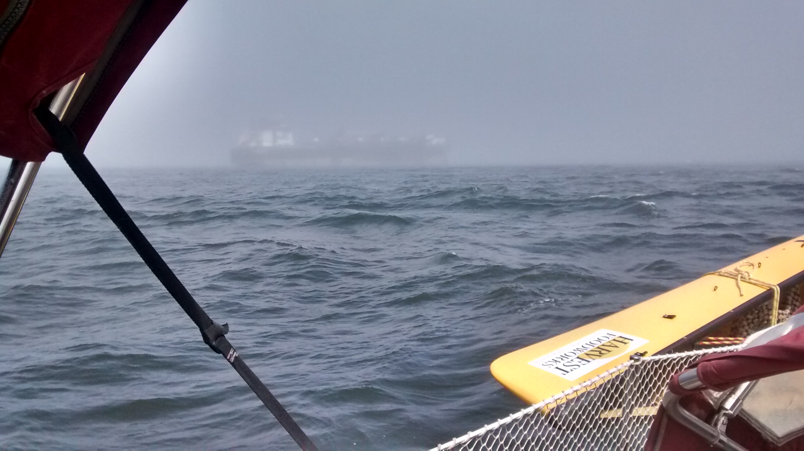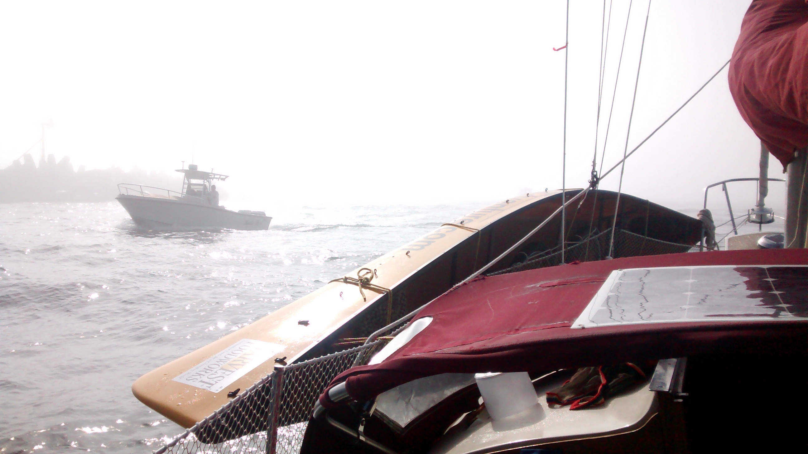 Nous y sommes rentrés pressaient urgence hier après-midi quand ce coup de vente s’est subitement abattu sur nous avec le passager du front froid. La température à chuté de 15° au même moment. Un coup de fil pour les prévenir et un des membres nous attendrait site le quai pour attraper nous amarres.