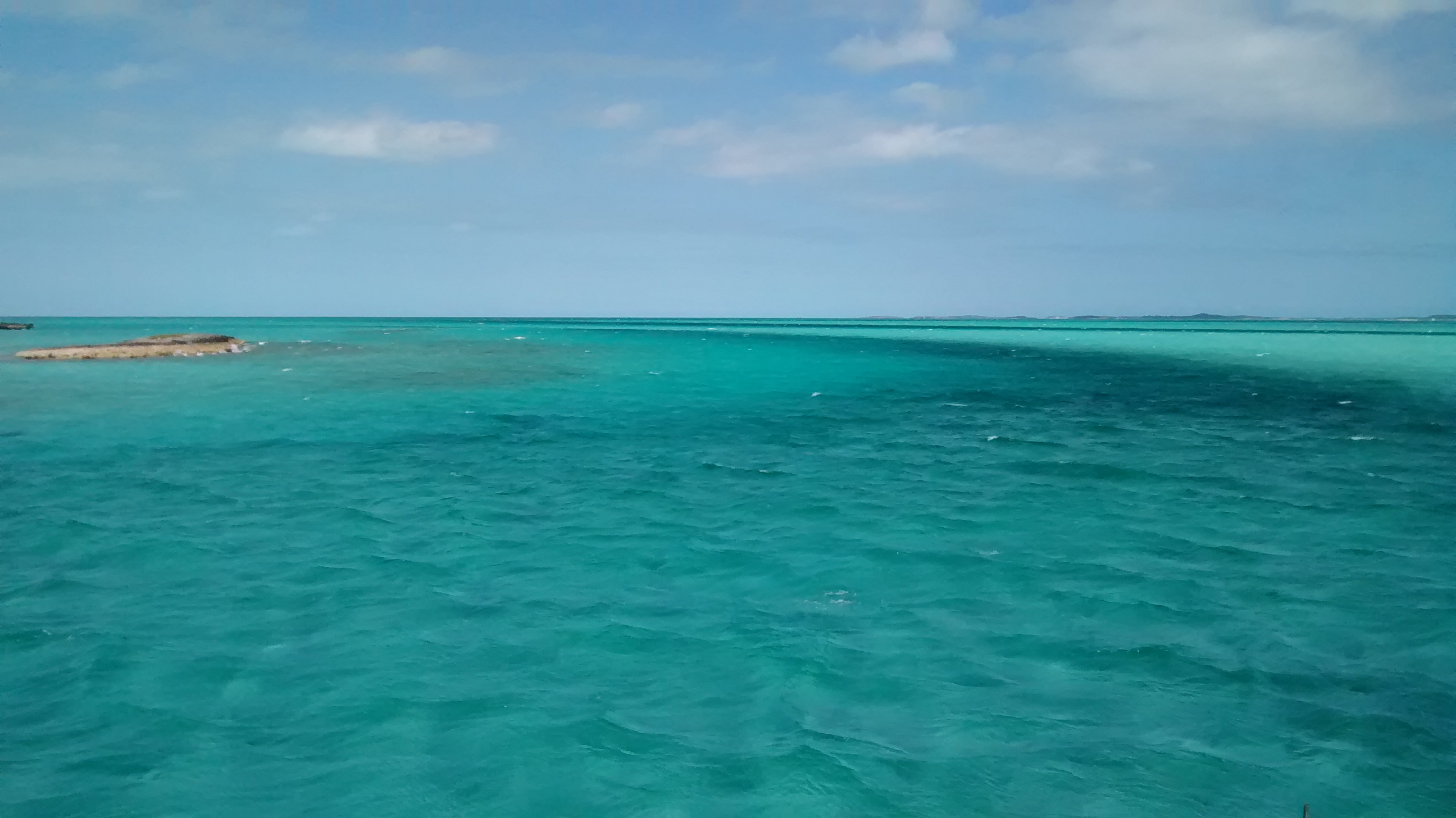 Non, nous ne sommes pas traversés à Cuba. Il ne s’agit pas de la Baie des Cochons mais bien de la Plage des Cochons sur Big Majors Cay. C’est l’endroit où on va se cacher quand on a passé la nuit précédente à se faire brasser dans un ancrage où le roulis n’a eu de cesse. Ça arrive quand le vent pousse le flot dans une passe et que la vague tourne autour de la pointe et vient nous frapper par le travers.