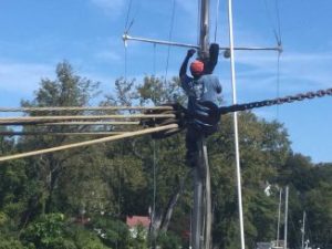Au final, nous nous sommes retrouvés les derniers entrés à Manasquan et ce n’est que rendus que nous avons retrouvé les trois autres bateaux qui avaient finalement aussi pris la première ré-entrée là où ils pouvaient mettre fin au brassage. Bien sûr, parmis tout ce beau monde, c’est moi que la Garde Côtière a intercepté en entrant dans l’Inlet, pour une inspection de routine. J’ai maintenant mon certificat de conformité pour ce qui est des éléments de sécurité requis à bord. Rassurant pour la suite des choses.